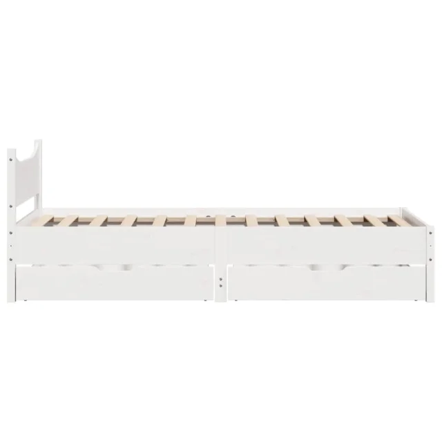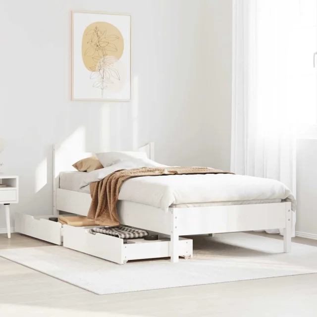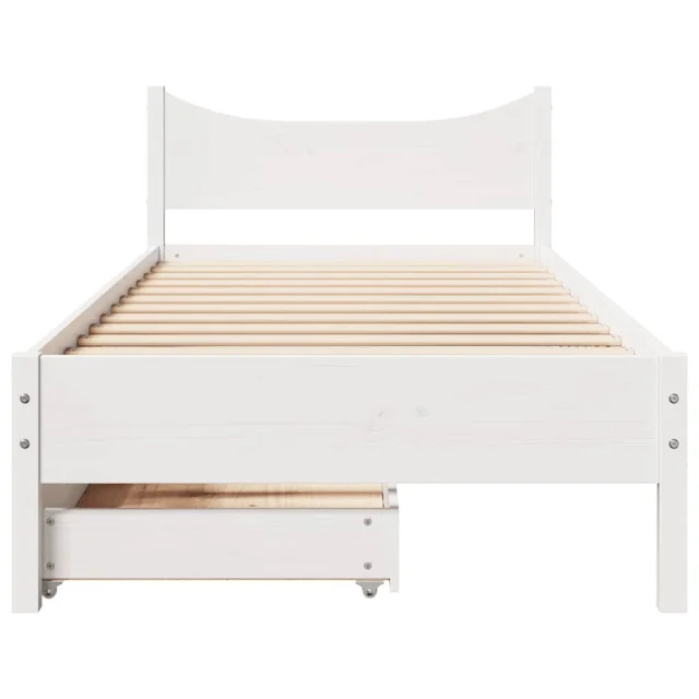 Posteljni okvir - Enojna postelja - Postelja za odrasle s predali bel 75x190 cm trdna borovina