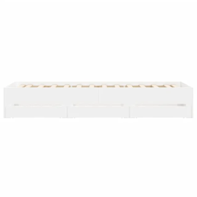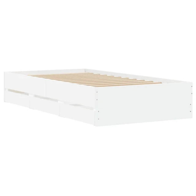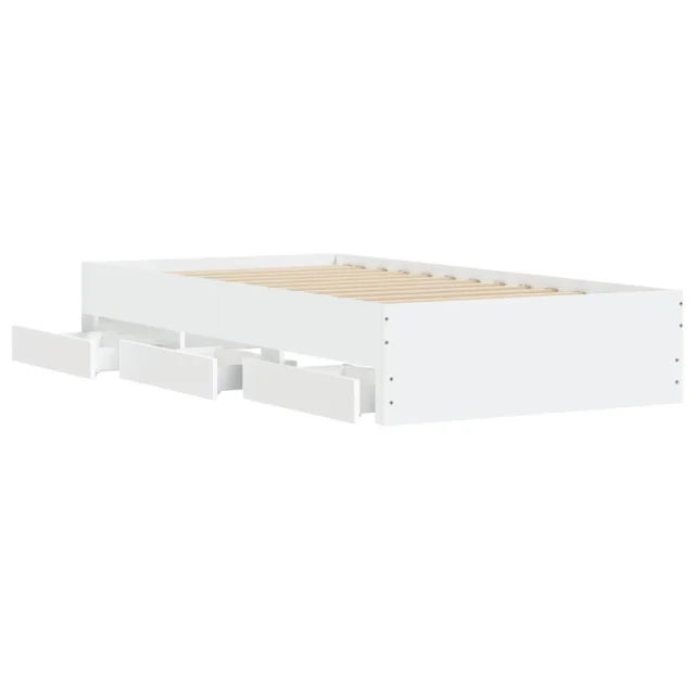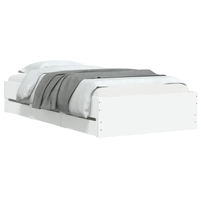 Posteljni okvir - Enojna postelja - Postelja za odrasle s predali bel 90x200 cm inženirski les