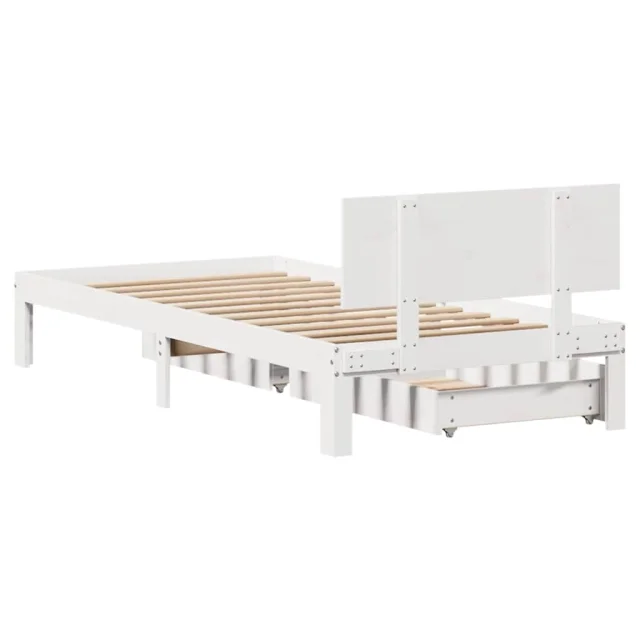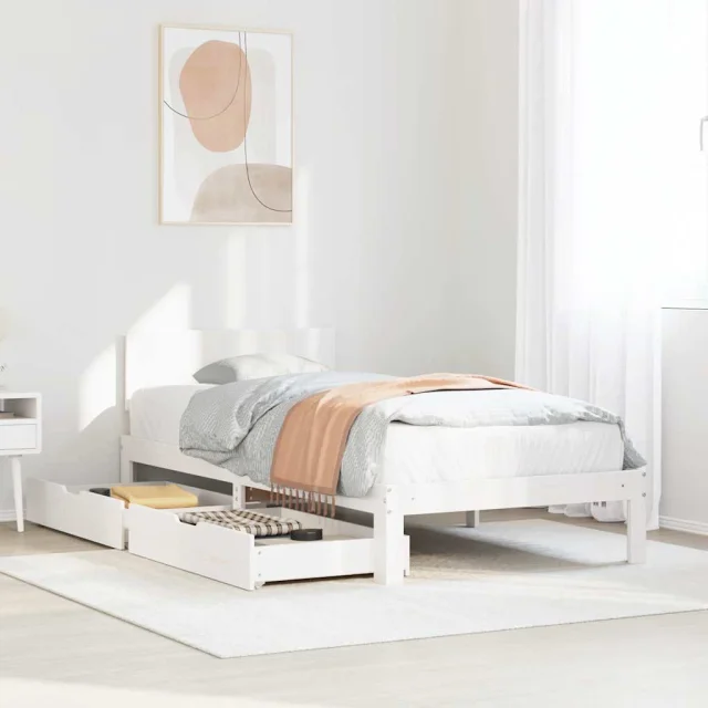 Posteljni okvir - Enojna postelja - Postelja za odrasle s predali bel 90x200 cm trdna borovina