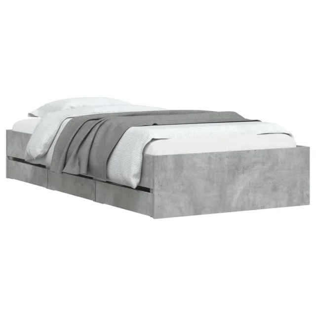 Posteljni okvir - Enojna postelja - Postelja za odrasle s predali betonsko siv 90x200 cm inženirski les