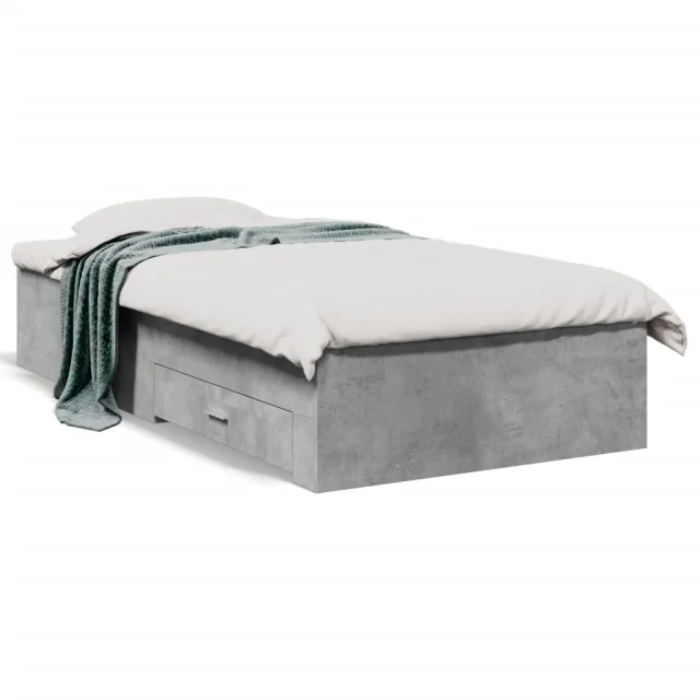 Posteljni okvir - Enojna postelja - Postelja za odrasle s predali betonsko siv 90x200 cm inženirski les