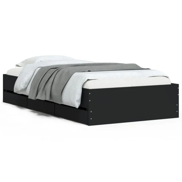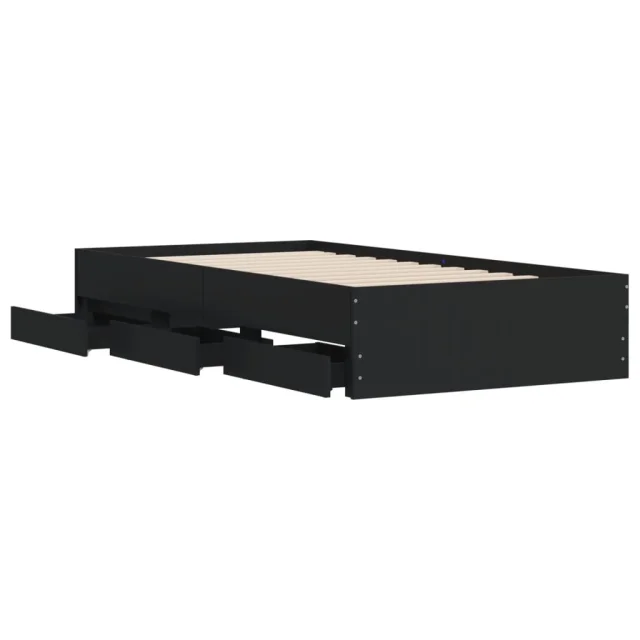 Posteljni okvir - Enojna postelja - Postelja za odrasle s predali črn 100x200 cm inženirski les