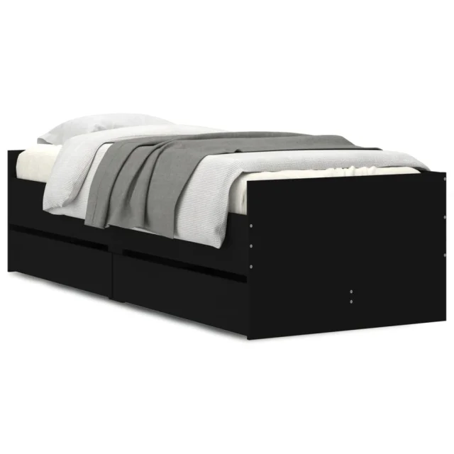 Posteljni okvir - Enojna postelja - Postelja za odrasle s predali črn 100x200 cm