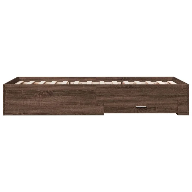 Posteljni okvir - Enojna postelja - Postelja za odrasle s predali rjavi hrast 75x190 cm inž. les