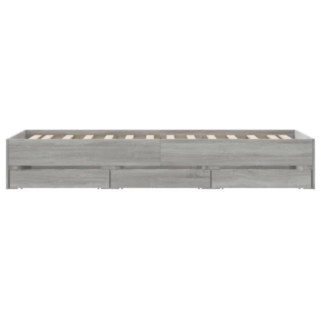 Posteljni okvir - Enojna postelja - Postelja za odrasle s predali siva sonoma 100x200 cm inženirski les