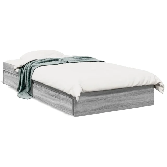 Posteljni okvir - Enojna postelja - Postelja za odrasle s predali siva sonoma 90x200 cm inženirski les