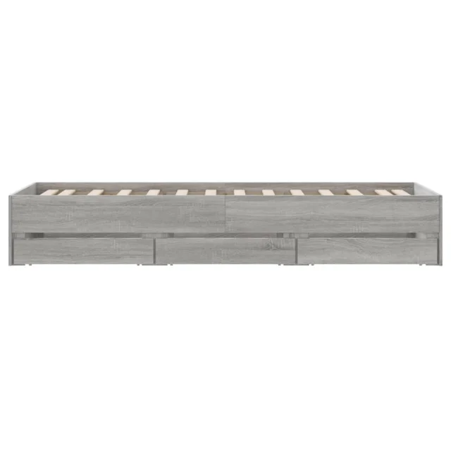 Posteljni okvir - Enojna postelja - Postelja za odrasle s predali siva sonoma 90x200 cm inženirski les