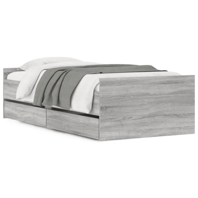 Posteljni okvir - Enojna postelja - Postelja za odrasle s predali siva sonoma 90x200 cm