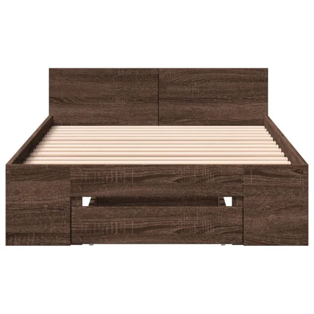 Posteljni okvir - Enojna postelja - Postelja za odrasle s predalom rjavi hrast 75x190 cm inž. les