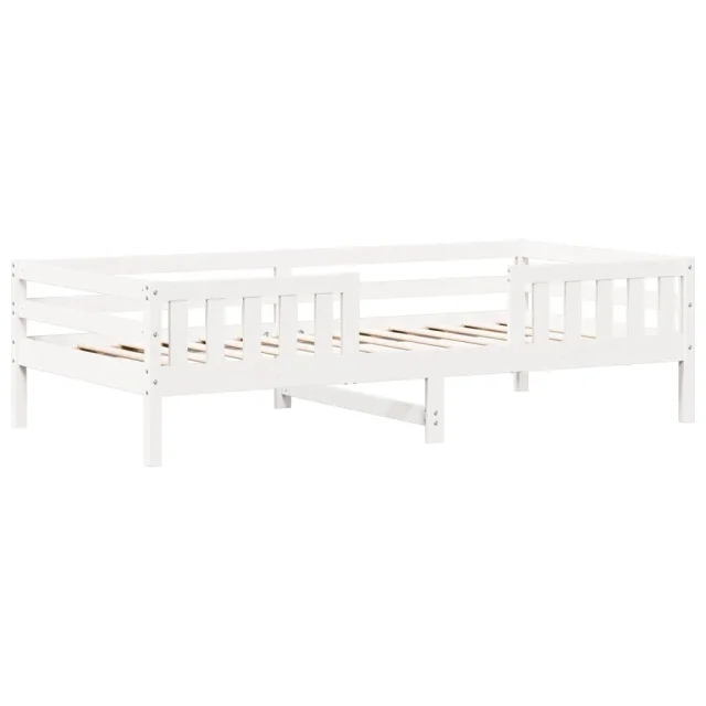 Posteljni okvir - Enojna postelja - Postelja za odrasle s streho bel 80x200 cm trdna borovina