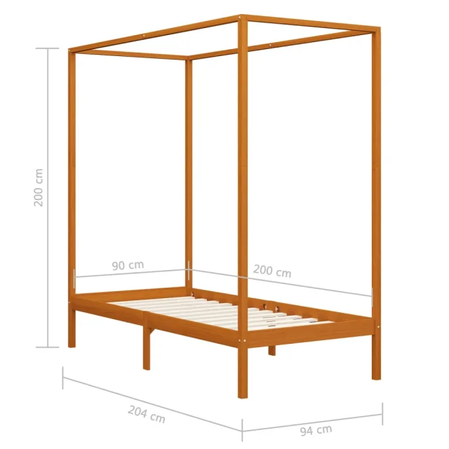 Postelja je pametno zasnovana z ogrodjem za baldahin za obešanje najljubših zaves, kar bo prispevalo k edinstvenemu šarmu vaše spalnice in ustvarilo dodatno zasebnost. Ta posteljni okvir je izdelan iz trdne borovine, zato je izjemno trden in trpežen. Močne letve nudijo potrebno podporo in so zelo udobne. Posteljni okvir je primeren za vzmetnico velikosti 90 x 200 cm.