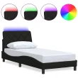 Posteljni okvir - Enojna postelja - Postelja za odrasle z LED brez vzmetnice Črna 90x190 cm Tkanina