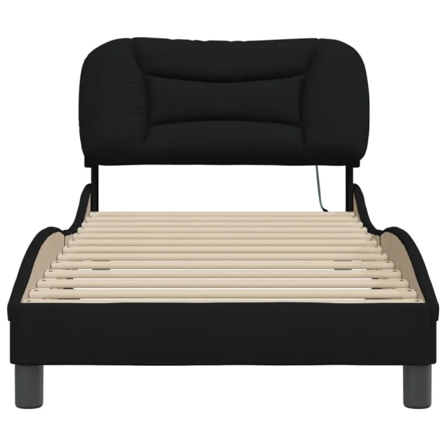 Posteljni okvir - Enojna postelja - Postelja za odrasle z LED brez vzmetnice Črna 90x200cm Tkanina