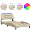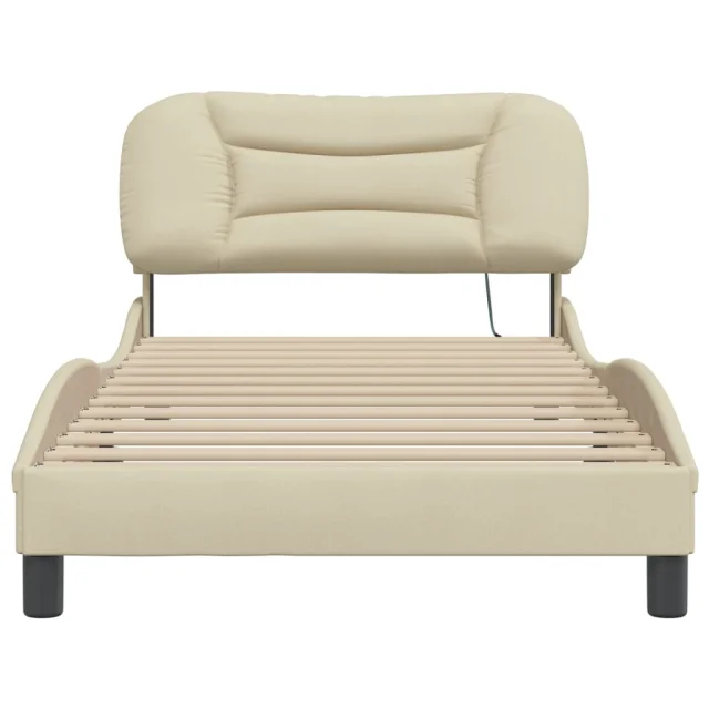 Posteljni okvir - Enojna postelja - Postelja za odrasle z LED brez vzmetnice krem 100x200 cm blago