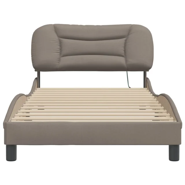 Posteljni okvir - Enojna postelja - Postelja za odrasle z LED brez vzmetnice taupe 100x200 cm blago