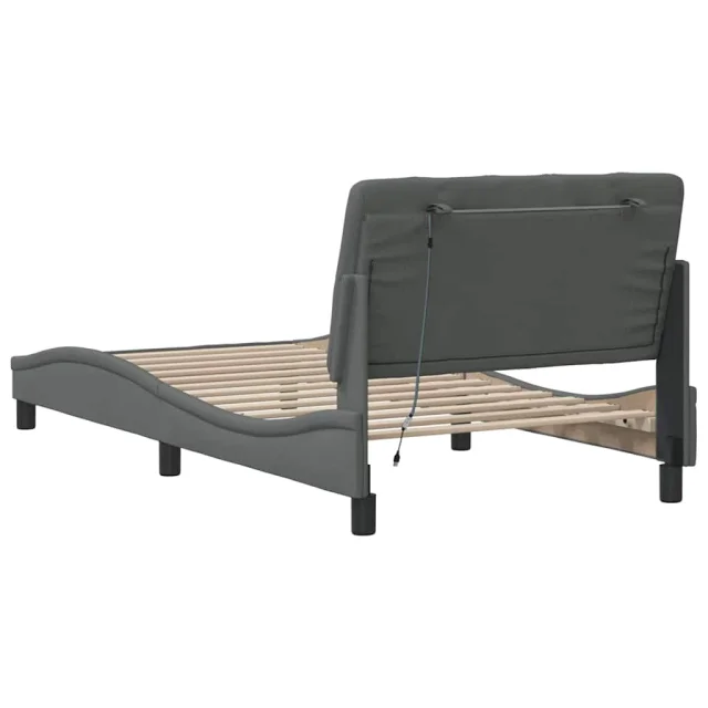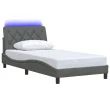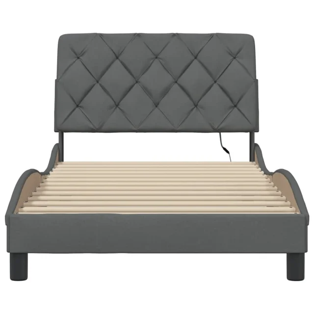 Posteljni okvir - Enojna postelja - Postelja za odrasle z LED brez vzmetnice temno siv 100x200 cm blago
