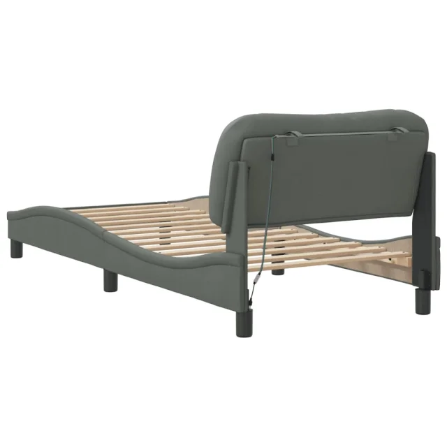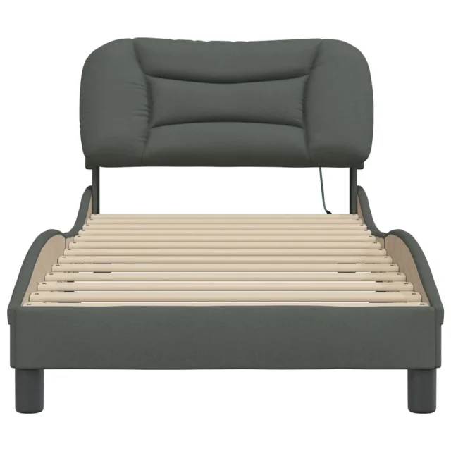 Posteljni okvir - Enojna postelja - Postelja za odrasle z LED brez vzmetnice temno siv 90x200 cm blago