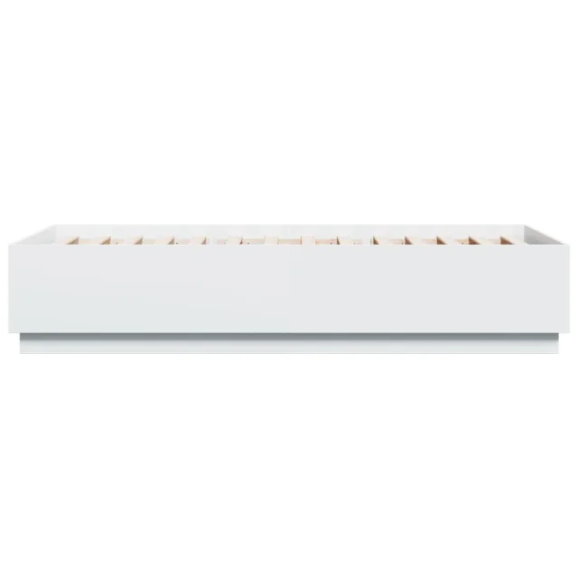Posteljni okvir - Enojna postelja - Postelja za odrasle z LED lučkami bel 100x200 cm inženirski les