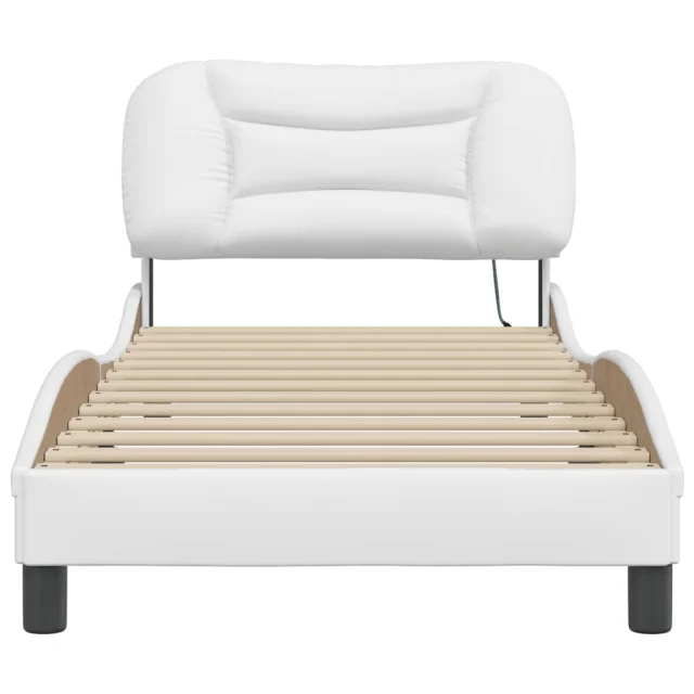 Posteljni okvir - Enojna postelja - Postelja za odrasle z LED lučkami bel 80x200 cm umetno usnje