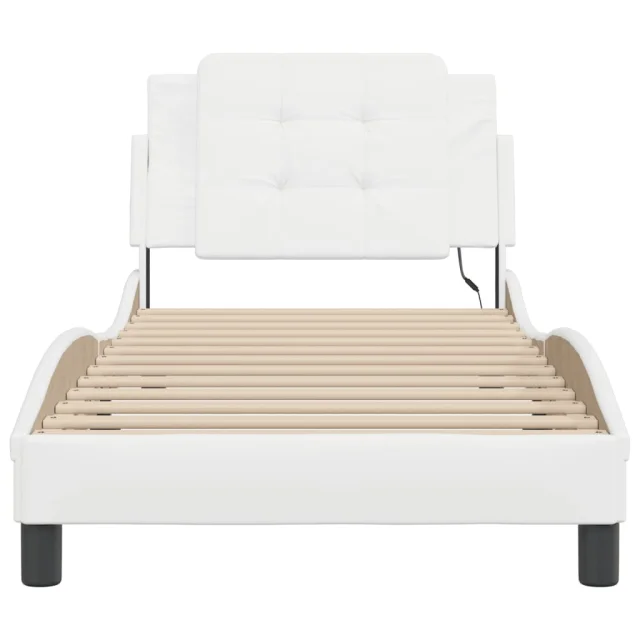Posteljni okvir - Enojna postelja - Postelja za odrasle z LED lučkami bel 80x200 cm umetno usnje