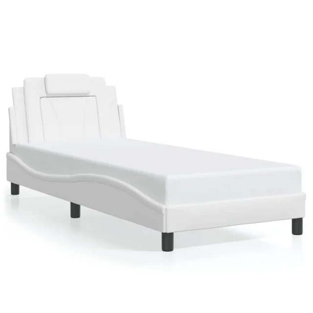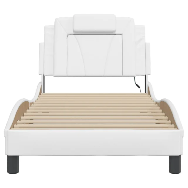 Posteljni okvir - Enojna postelja - Postelja za odrasle z LED lučkami bel 90x200 cm umetno usnje