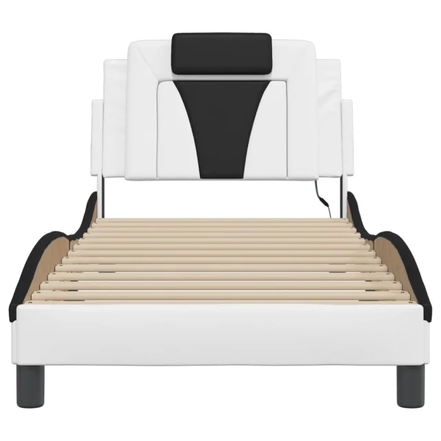Posteljni okvir - Enojna postelja - Postelja za odrasle z LED lučkami bel in črn 90x190 cm umetno usnje