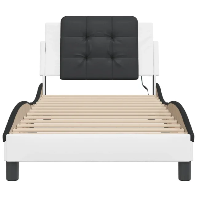Posteljni okvir - Enojna postelja - Postelja za odrasle z LED lučkami belo črn 100x200 cm umetno usnje