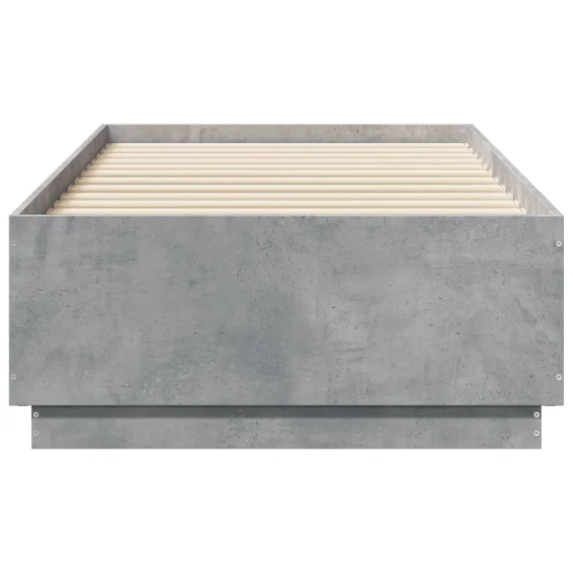 Posteljni okvir - Enojna postelja - Postelja za odrasle z LED lučkami betonsko siv 90x190 cm inž. les