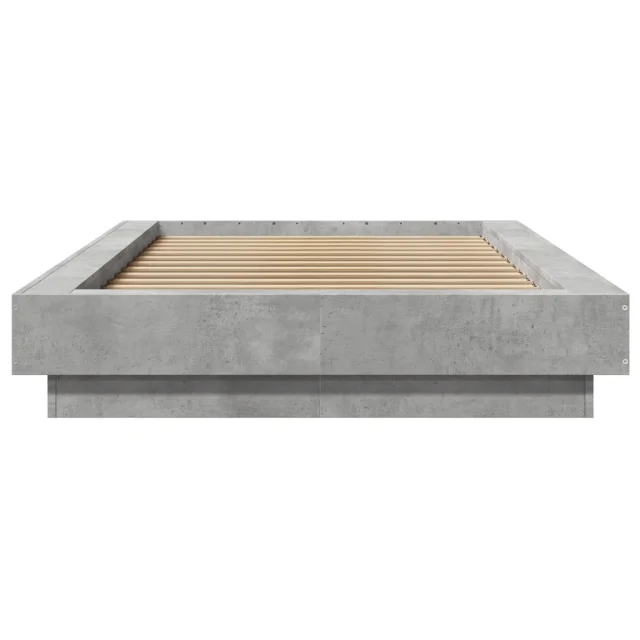 Posteljni okvir - Enojna postelja - Postelja za odrasle z LED lučkami betonsko siv 90x190 cm inž. les