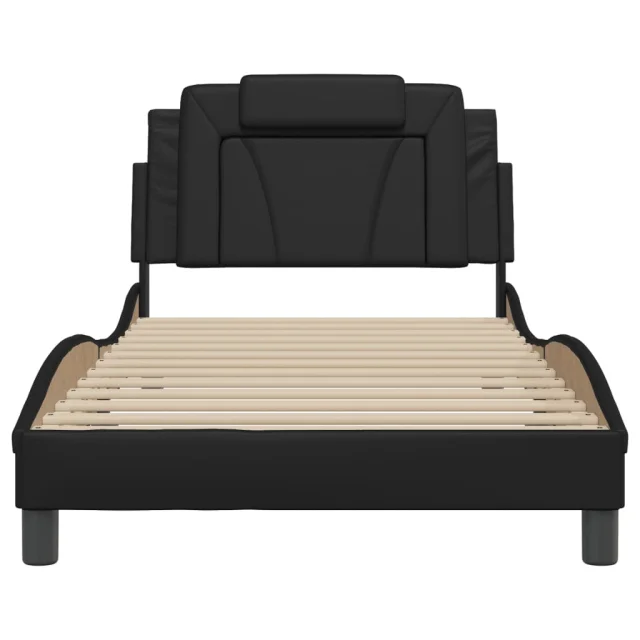 Posteljni okvir - Enojna postelja - Postelja za odrasle z LED lučkami črn 100x200 cm umetno usnje
