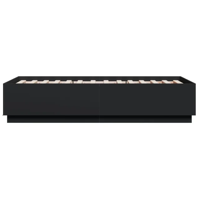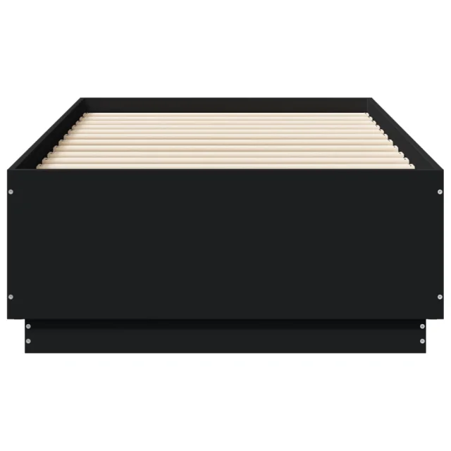 Posteljni okvir - Enojna postelja - Postelja za odrasle z LED lučkami črn 75x190 cm inženirski les