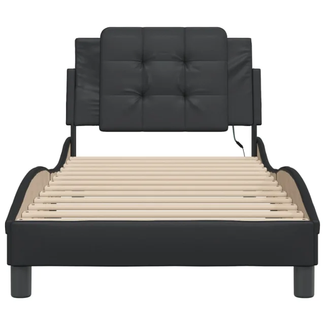 Posteljni okvir - Enojna postelja - Postelja za odrasle z LED lučkami črn 80x200 cm umetno usnje