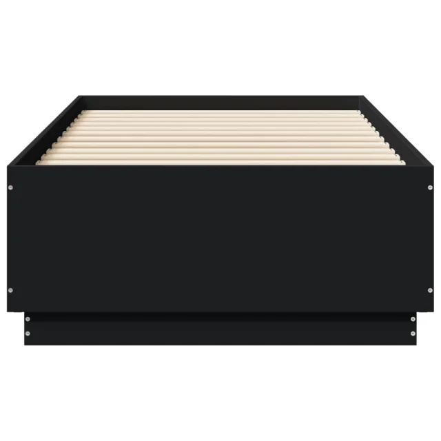 Posteljni okvir - Enojna postelja - Postelja za odrasle z LED lučkami črn 90x190 cm inženirski les