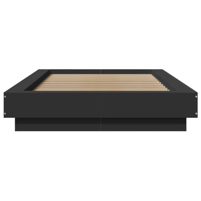 Posteljni okvir - Enojna postelja - Postelja za odrasle z LED lučkami črn 90x200 cm inženirski les