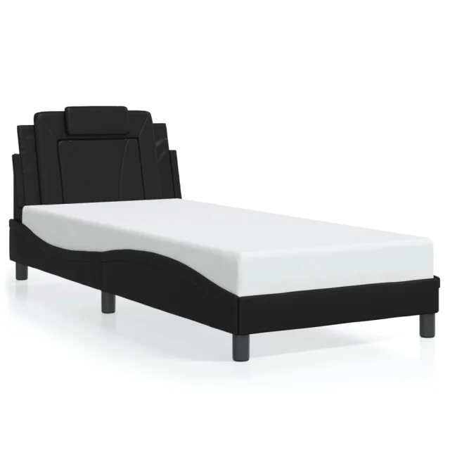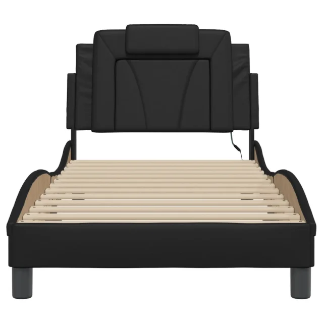 Posteljni okvir - Enojna postelja - Postelja za odrasle z LED lučkami črn 90x200 cm umetno usnje