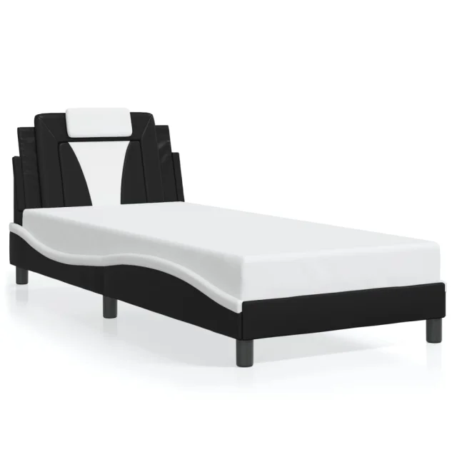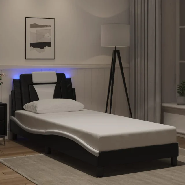 Posteljni okvir - Enojna postelja - Postelja za odrasle z LED lučkami črn in bel 80x200 cm umetno usnje