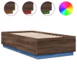 Posteljni okvir - Enojna postelja - Postelja za odrasle z LED lučkami rjavi hrast 75x190 cm inž. les