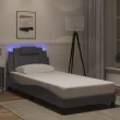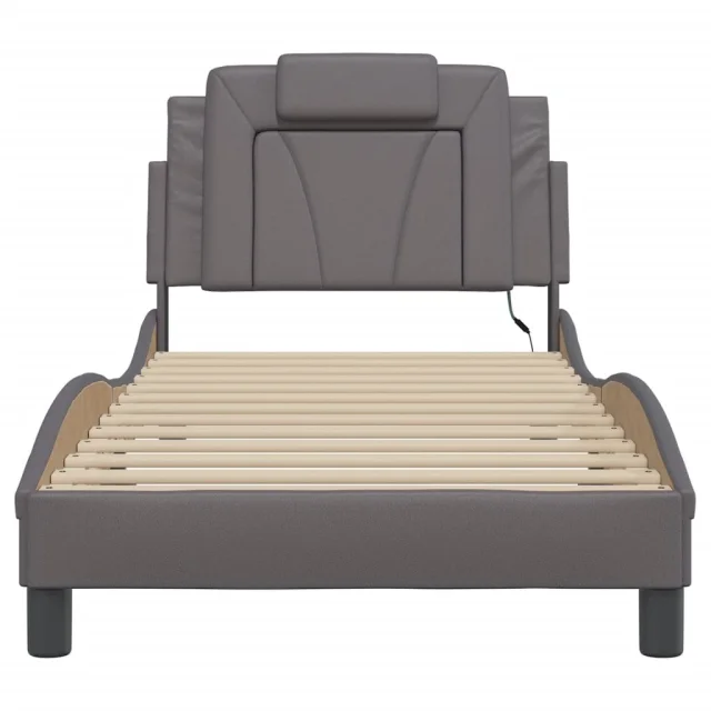 Posteljni okvir - Enojna postelja - Postelja za odrasle z LED lučkami siv 90x190 cm umetno usnje