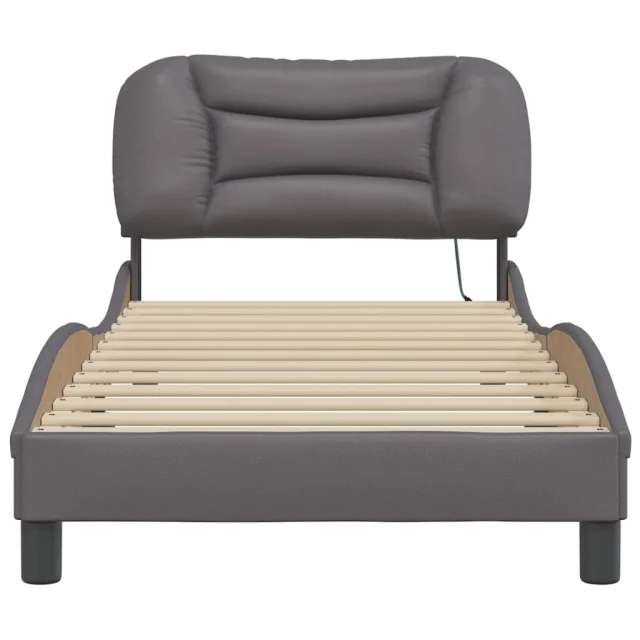 Posteljni okvir - Enojna postelja - Postelja za odrasle z LED lučkami siv 90x200 cm umetno usnje