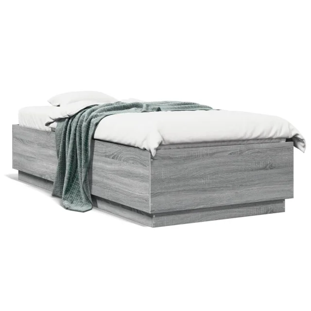 Posteljni okvir - Enojna postelja - Postelja za odrasle z LED lučkami siva sonoma 90x200 cm inž. les