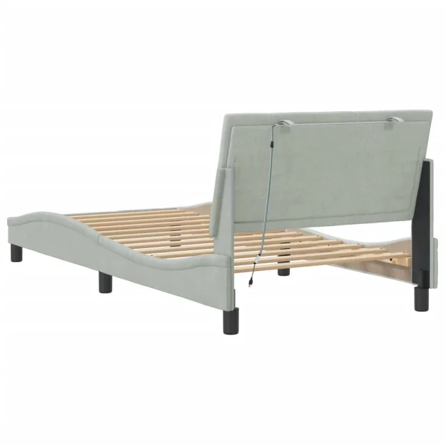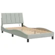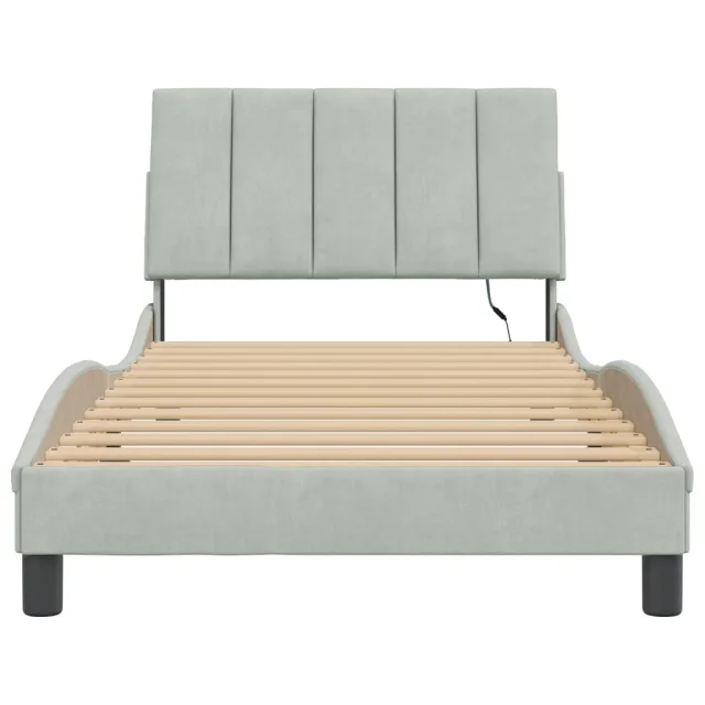 Posteljni okvir - Enojna postelja - Postelja za odrasle z LED lučkami svetlo siv 100x200 cm žamet