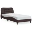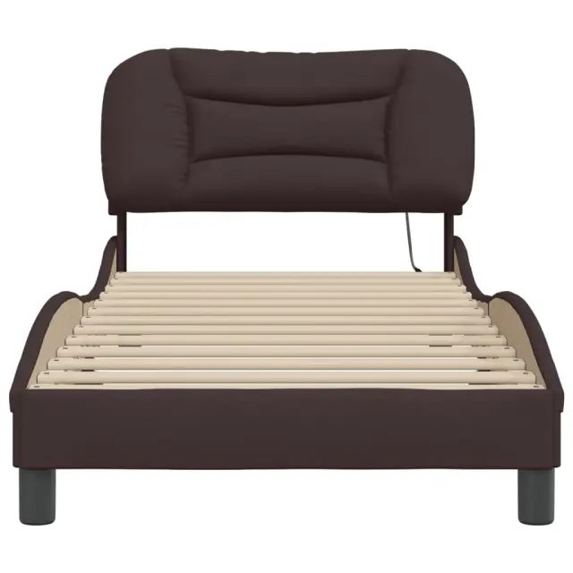 Posteljni okvir - Enojna postelja - Postelja za odrasle z LED lučkami temno rjav 80x200 cm tkanina