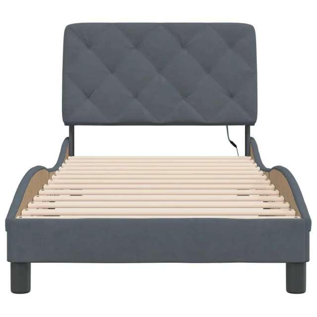 Posteljni okvir - Enojna postelja - Postelja za odrasle z LED lučkami temno siv 80x200 cm žamet
