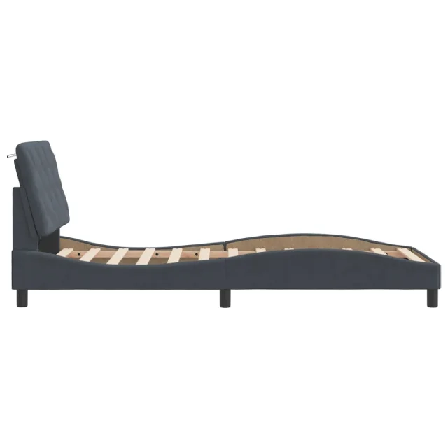 Posteljni okvir - Enojna postelja - Postelja za odrasle z LED lučkami temno siv 90x190 cm žamet