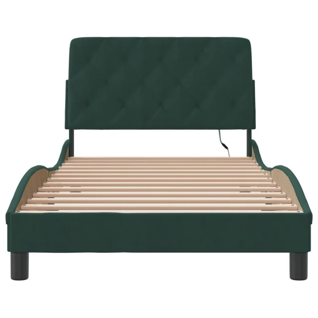 Posteljni okvir - Enojna postelja - Postelja za odrasle z LED lučkami temno zelen 100x200 cm žamet
