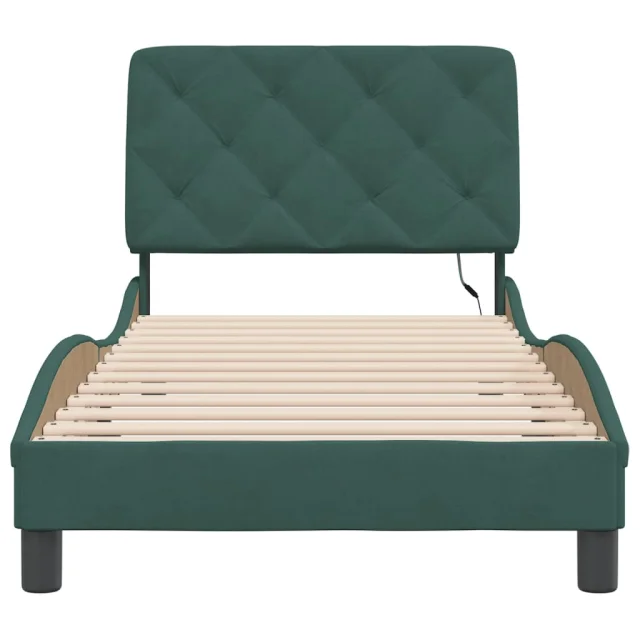 Posteljni okvir - Enojna postelja - Postelja za odrasle z LED lučkami temno zelen 90x190 cm žamet