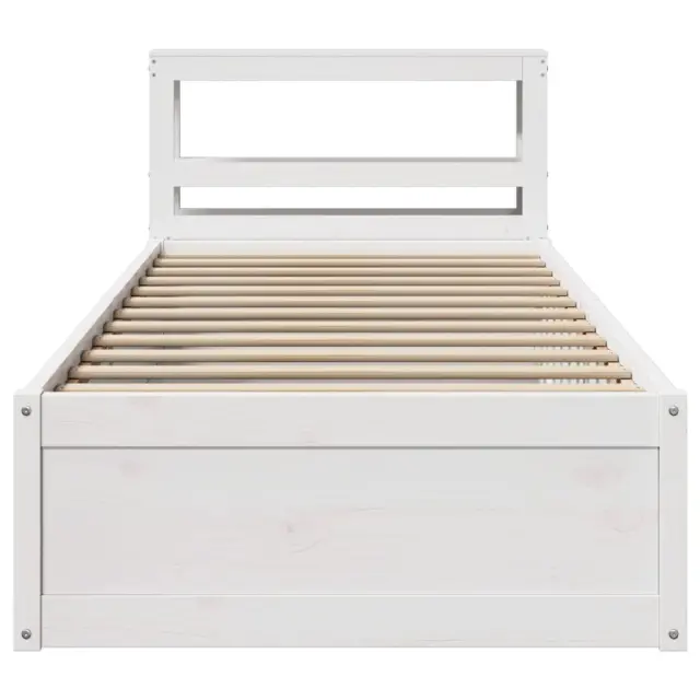 Posteljni okvir - Enojna postelja - Postelja za odrasle z vzglavjem bel 75x190 cm trdna borovina