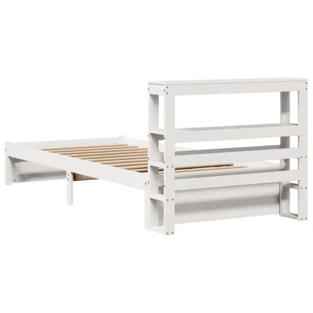 Posteljni okvir - Enojna postelja - Postelja za odrasle z vzglavjem bel 75x190 cm trdna borovina