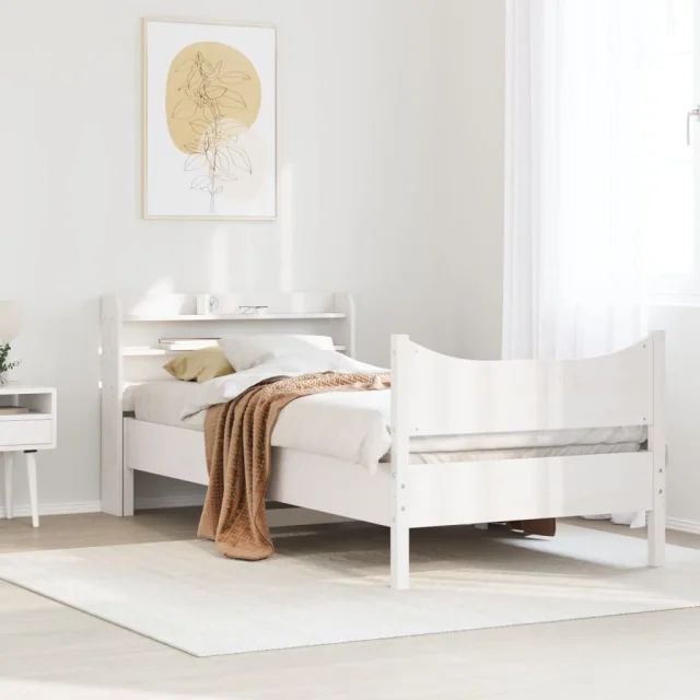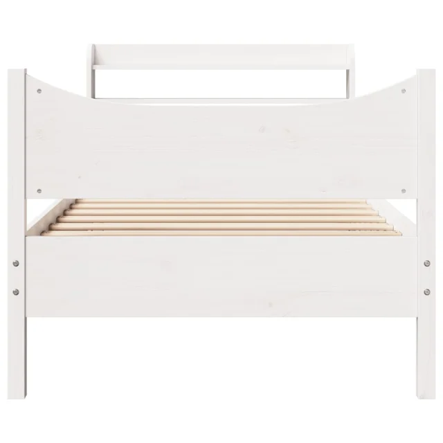 Posteljni okvir - Enojna postelja - Postelja za odrasle z vzglavjem bel 75x190 cm trdna borovina