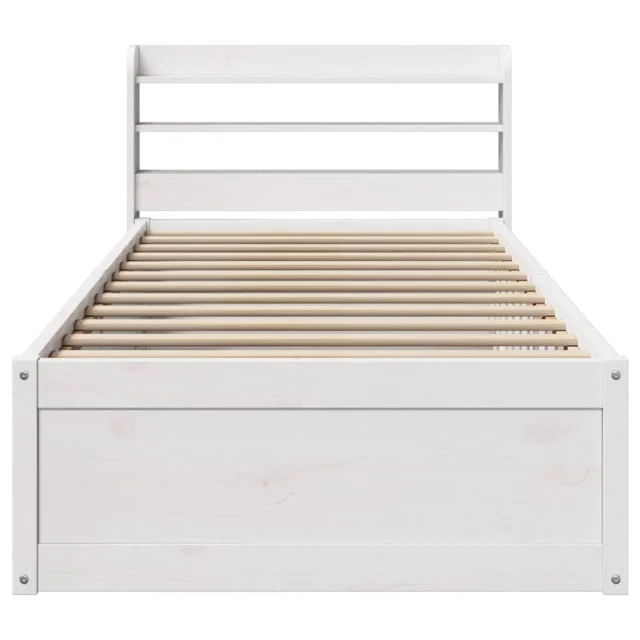 Posteljni okvir - Enojna postelja - Postelja za odrasle z vzglavjem bel 90x190 cm trdna borovina